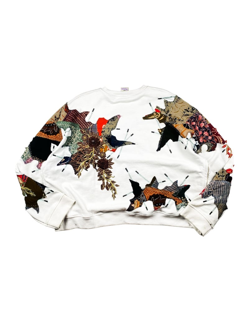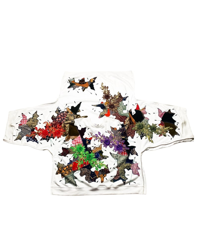 -Reworked Crewneck, combining elements of several materials and mashing them into one, cut & sew