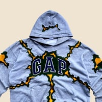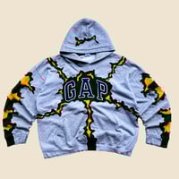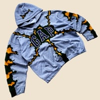-Upcycled gap hoodie, combining elements of several materials and mashing them into one, cut & sew