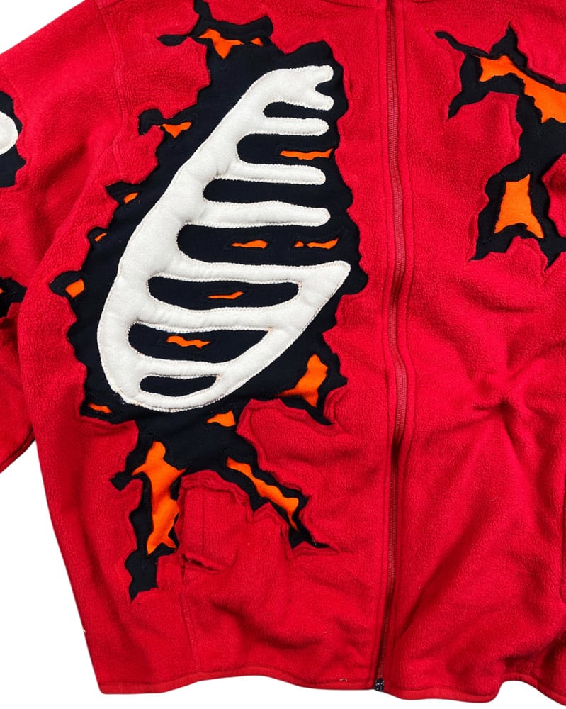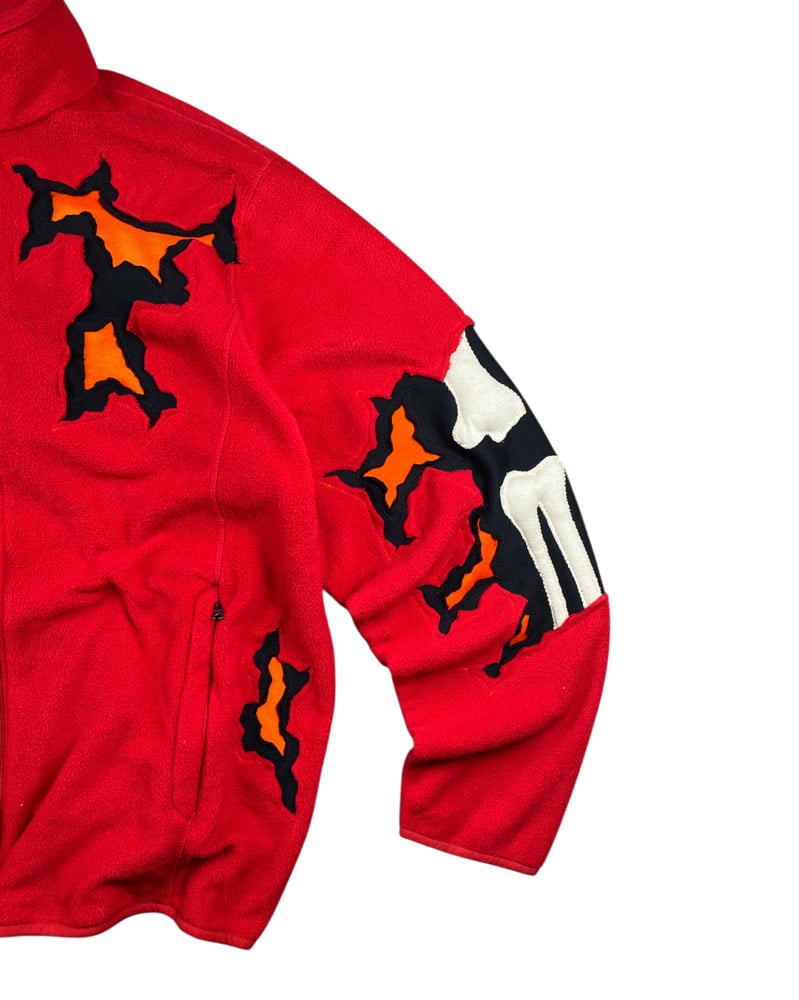 -Upcycled polar fleece, combining elements of several materials and mashing them into one, cut & sew