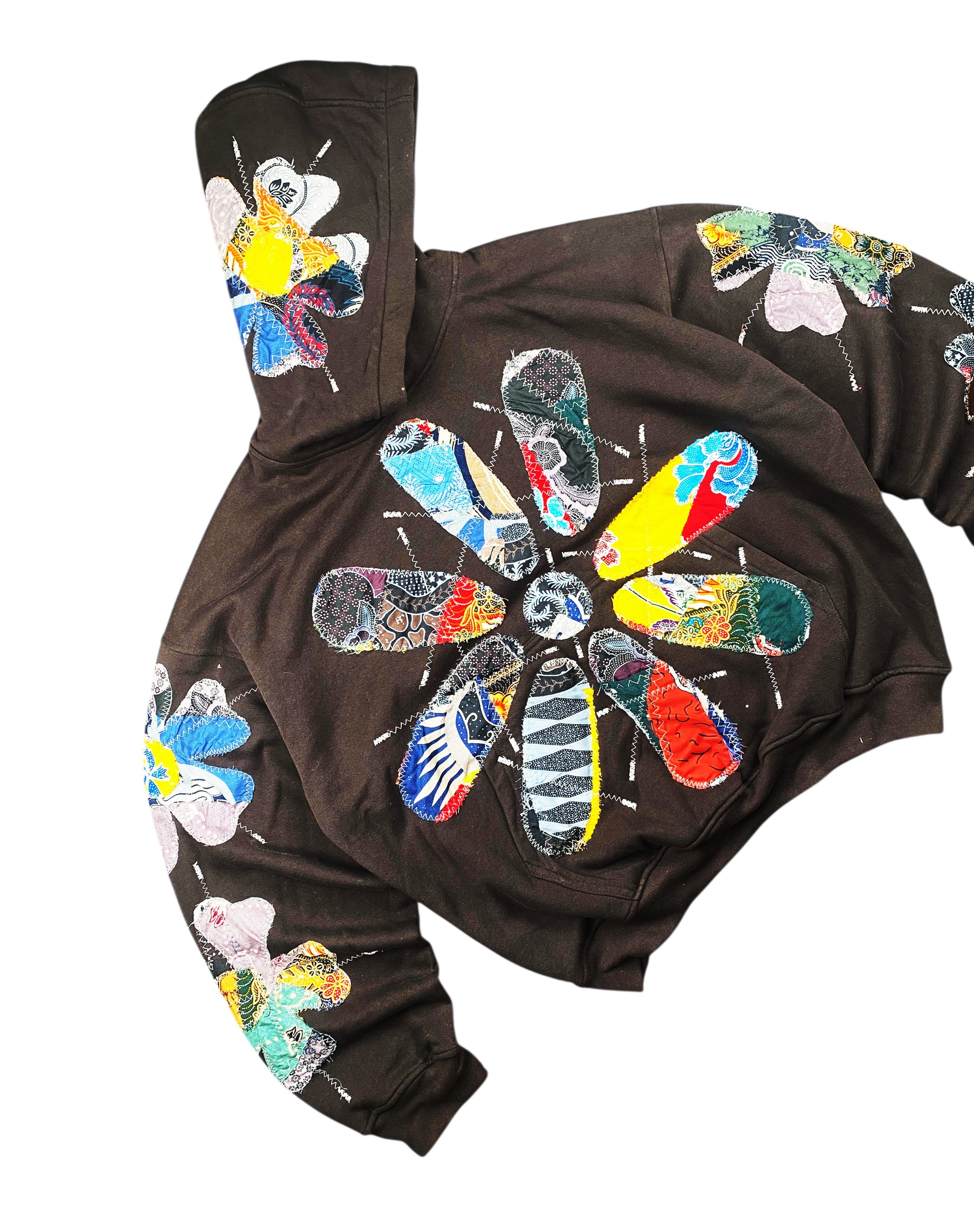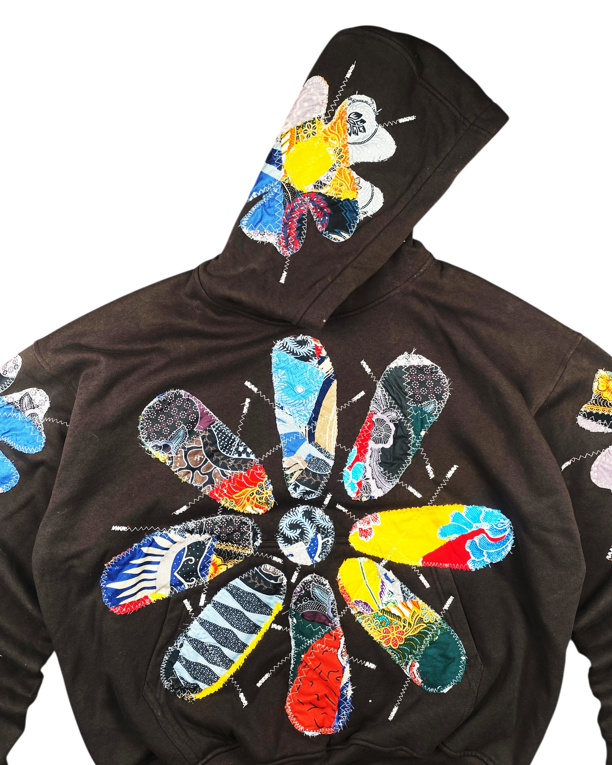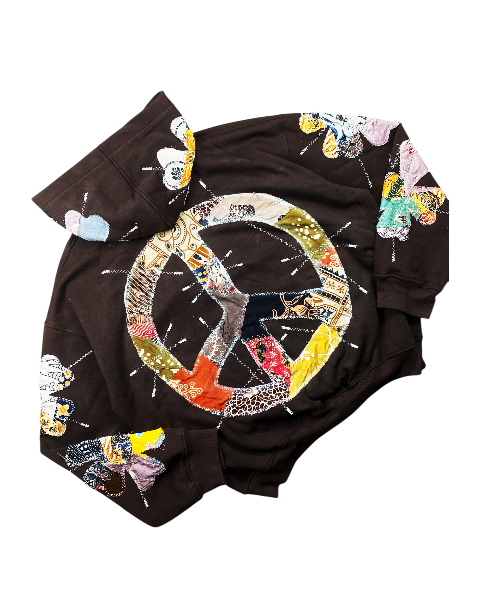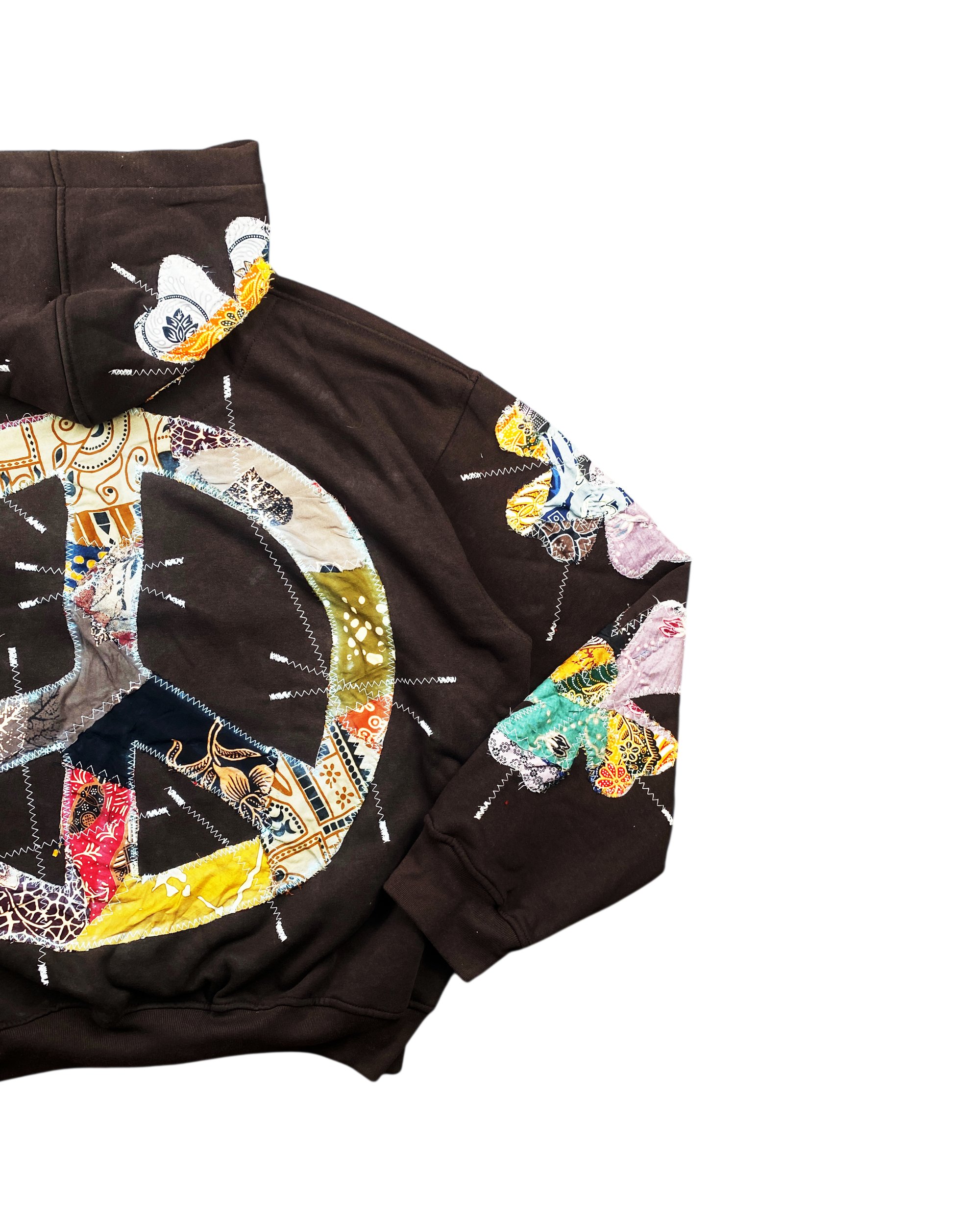 Re-worked 1 of 1 Batik Peace Bloom Patchworks Hoodie Size XL